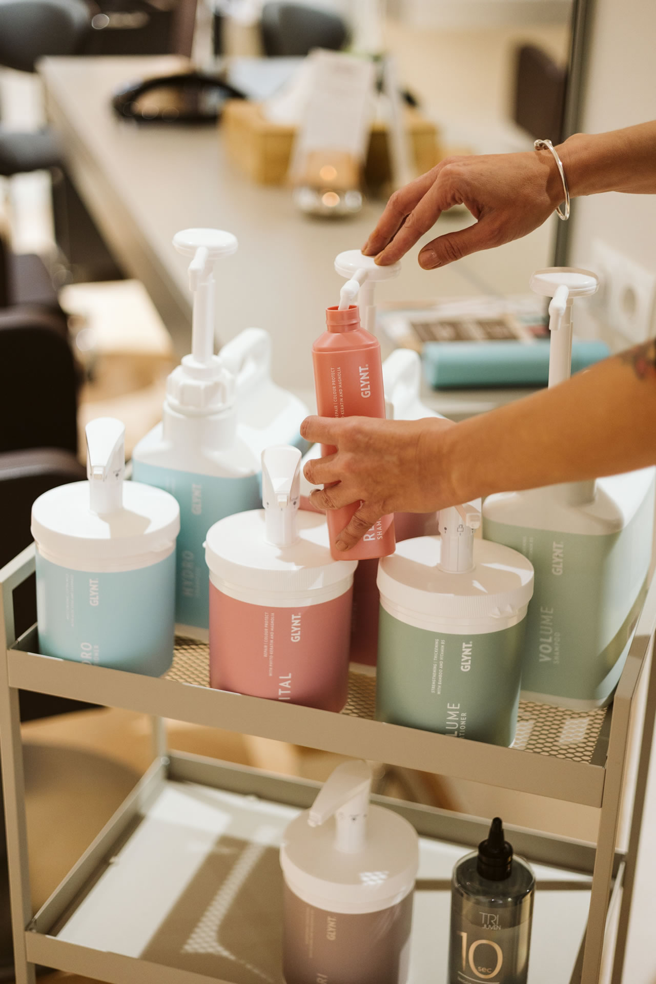 Wir arbeiten mit veganen, nachhaltigen Produkten, die dein Haar verwöhnen und zugleich die Umwelt schonen. Besonders stolz sind wir auf unsere Nachfüllstationen, mit denen wir unnötigen Verpackungsmüll vermeiden und gemeinsam mit dir einen aktiven Beitrag zur Ressourcenschonung leisten.
